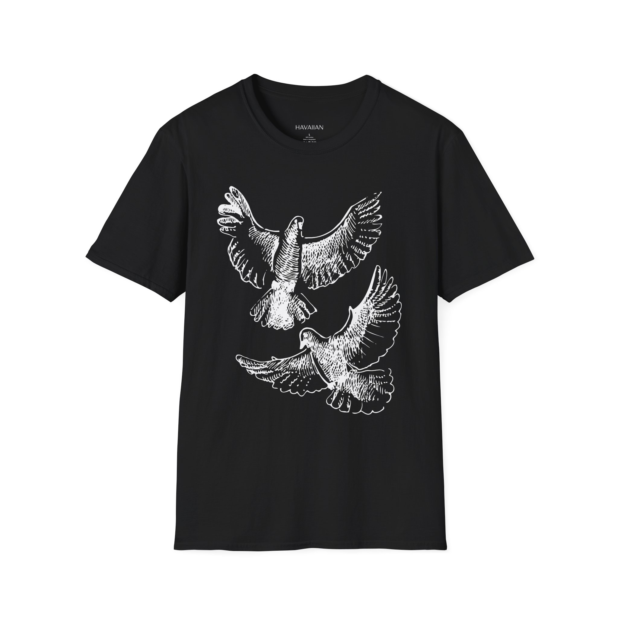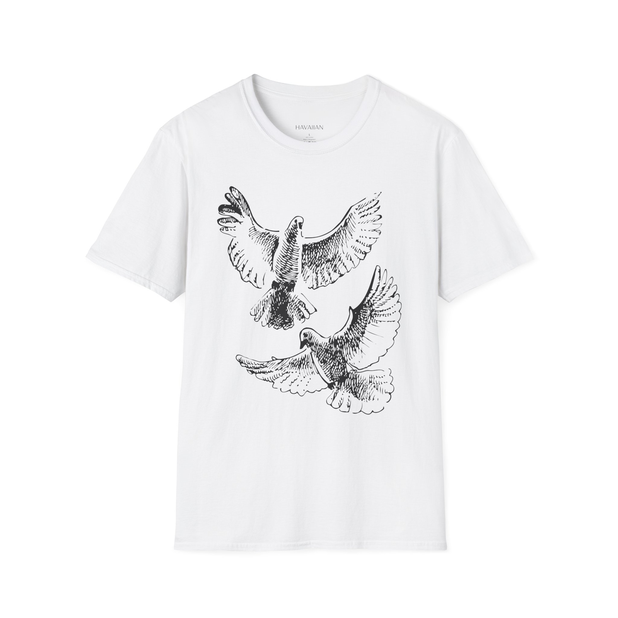 Celebrate peace, freedom, and natural beauty with this Flying Doves Line Art T‑Shirt. Featuring two elegant birds in mid-flight, rendered in crisp black linework on a soft white tee, this minimalist design evokes a sense of calm and wonder. Made from premium unisex soft-style cotton, it’s a versatile addition to any wardrobe and perfect for bird lovers, nature enthusiasts, or anyone who values serene, meaningful design.
